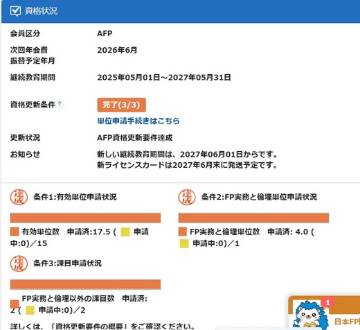 これで、2029年5月までは、AFPの認定が受けられることとなりました。