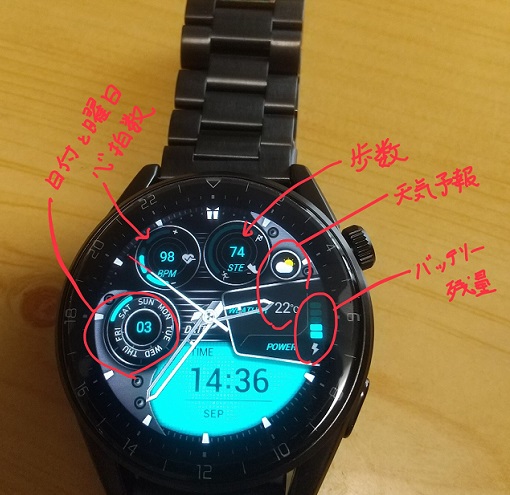 そういう意味では、スマートウォッチは、常時点灯(表示)されていなくて、電池消費を抑えるために、腕を傾けた時にだけ表示するようになってるんですが、これが安物のせいなのか、表示するのに1~2秒かかってしまい、これが結構なストレスですw