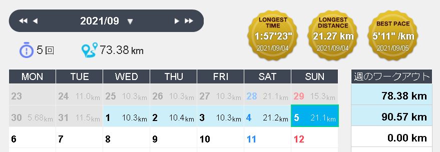 日曜は薄曇りの中を、1人でハーフマラソンだったとさ