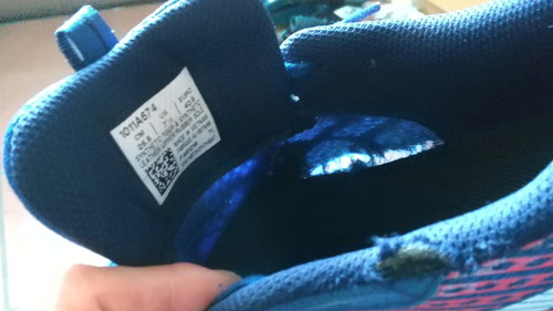 シューズのサイド部分は、完全に穴が開いてしまっており、破れが広がれば、ソールと分離してしまいそうな状況です。