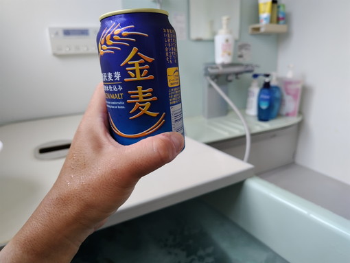 お湯を張り、ビール(←おっと、発泡酒だw)を持ち込み、