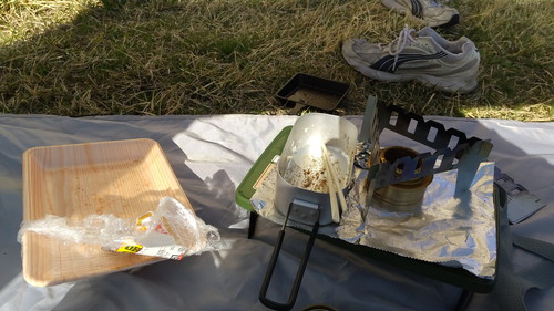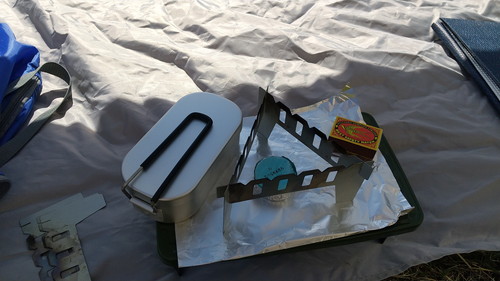 固形燃料で、「ほったらかし炊飯」を行いました。(←固形燃料が燃え尽きるまでほったらかしておけば、ご飯が炊けているという炊飯方法)