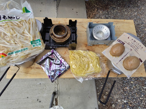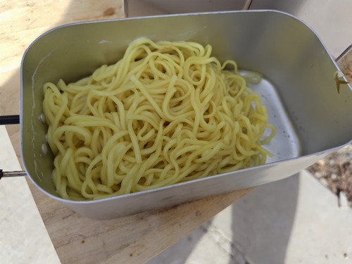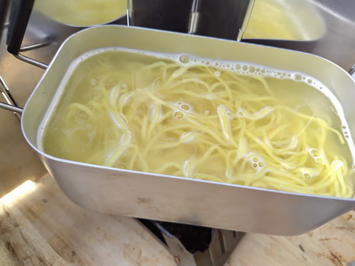 おっきいメスティンは麺を湯がく用で、