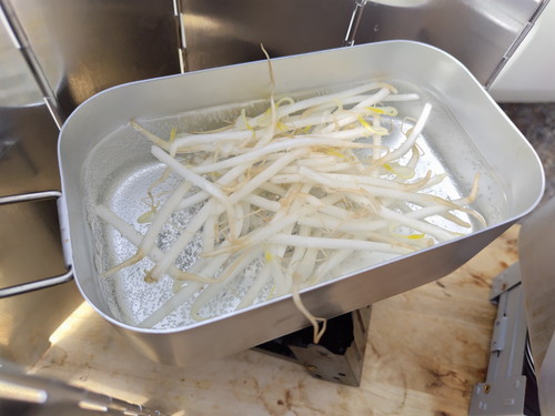もやしを茹でたお湯で、