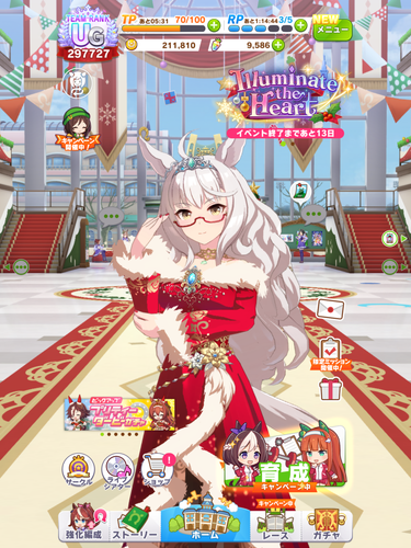 ウマ娘のホーム画面もクリスマスバージョンになったので、