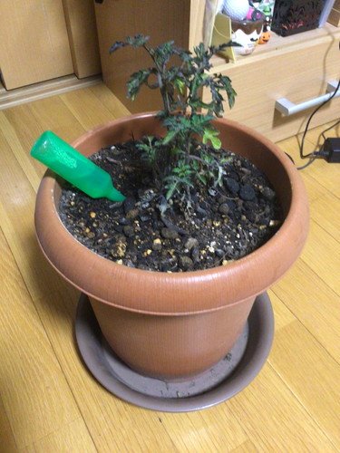部屋のプランターに植え替えて、室内栽培に挑んでみましたw