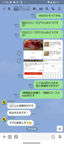 飲み会決めてる時のLINEが