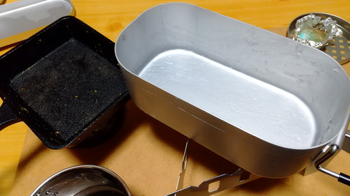 ふちのバリ取り(ヤスリ掛け)をして、シーズニング(焦げ付かないように、いったんお米のとぎ汁をメスティンで煮ること)をするそうなんですが、