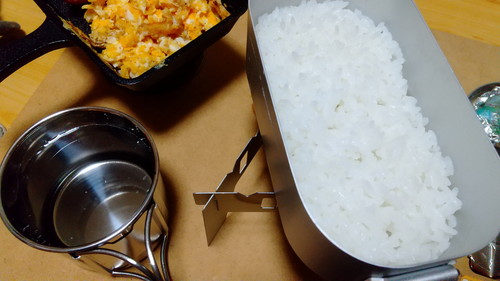 ちなみにこのメスティンは、1合炊きのキャパがありますが、今回はテストの為、0.5合炊きで初トライしました。