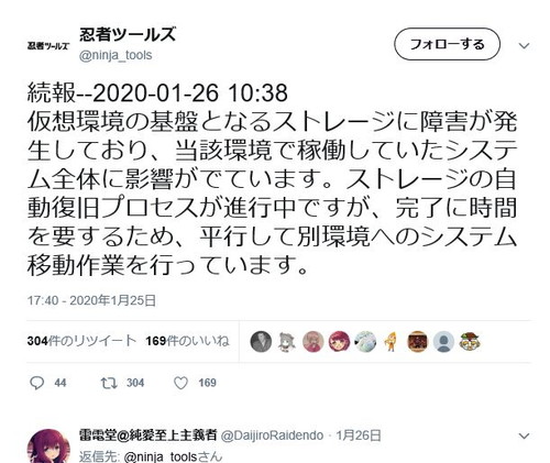 今回の障害は、びっくりしました。これまでもちょいちょいエラーが発生していたんですが、こんなに長かったのは初めてでした。