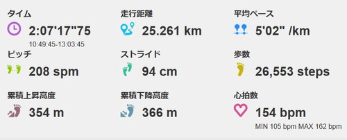 ちなみにアップダウンもありましたので、ペースはばらついていましたが、最後まで崩れることが無かったのが、唯一の収穫だったと思っています。