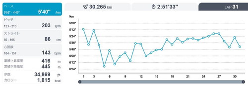 なんとか、電車でエスケープすることなく、30km走を完了することができました。