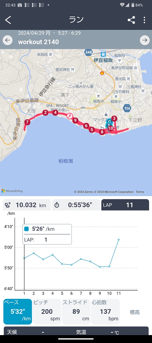 本日のラン 10.25km 55分21秒(←ゆっくりジョグ)