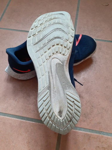 先に撮影した、今使っている濃紺のナイキが、最低でも800kmほど使用していて、今もまだ現役です。