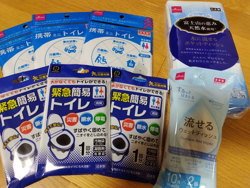 大きい方も行ける便所を1個と、小専用を1個持って行こうと思います(←残りは家の避難袋に入れた)