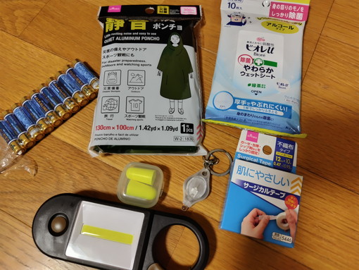 それから、ライトにライトの電池に、耳栓も購入しました。