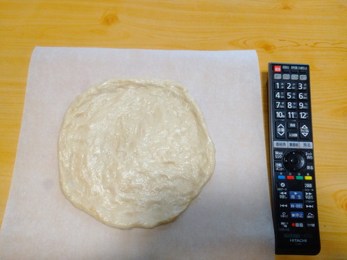 こんな風に丸く伸ばし(←大きさがわかるように、リモコンを置いてみたw)