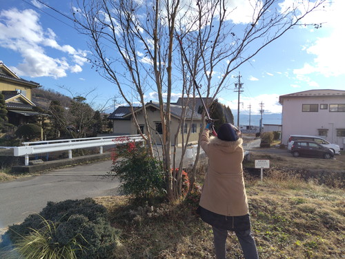 現場監督(妻w)が、あの枝が要らない、とか、ここ切ってと、