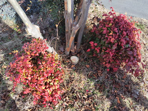 南天も赤い実をつけ、葉の落ちたシャラの木と並ぶと、冬を感じます。