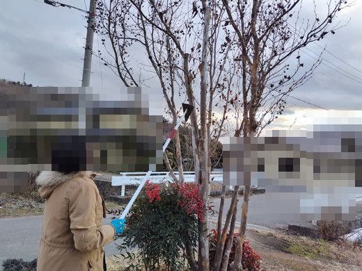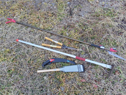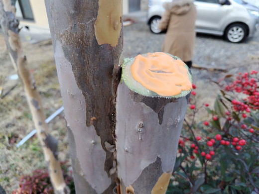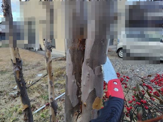 冬になり、雑草が枯れたので、雑草の処理と併せ、シャラの木の剪定と、