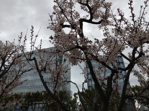桜が少し咲いていて、