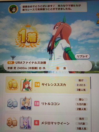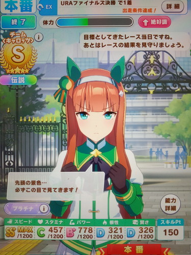 「アオハル杯」の最終レース「URAファイナルズ(決勝)」にも出走し、(←スピード能力は天井のMAXまで行った)