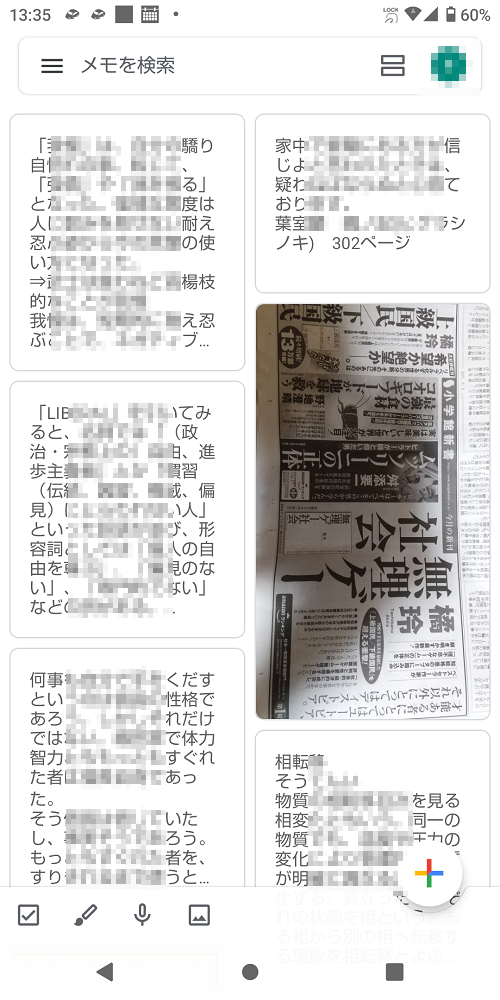 「本の友」として、いつでも携帯しているスマホにメモできる「Google Keep」