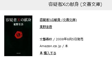 「容疑者Xの献身」です。