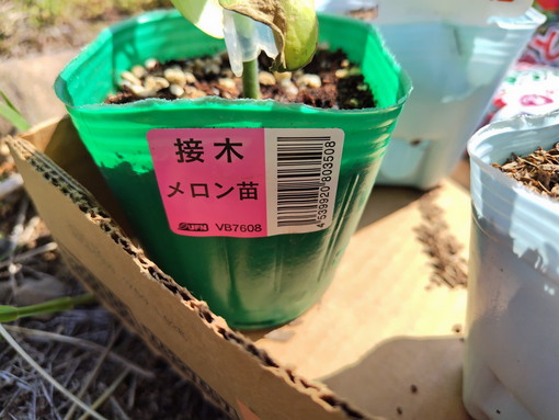一応、家庭菜園でも作りやすいように接ぎ木したメロン苗ということです。