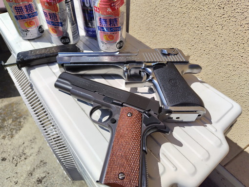 モデルガンは、もう20年くらい前のガスガンなので、もしかすると今売られているものよりも規制が緩く、パワーがあるかもしれません。