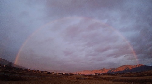 両端が見える虹は、ここのように田舎で何もないからこそ見られる景色で、都市部ではこうはいかないですよね。
