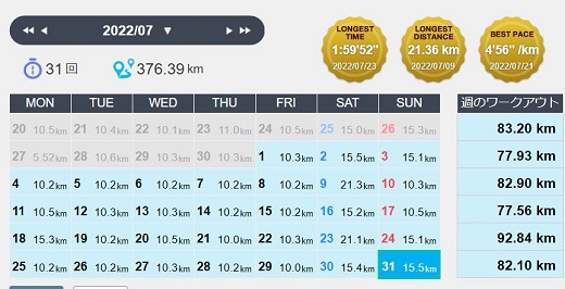 毎日、毎日、毎日走って、7月はなんとか376kmを走破!