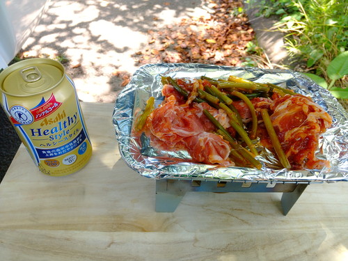 肉とノンアルビールでブランチにすっか(←まだ午前10時半)