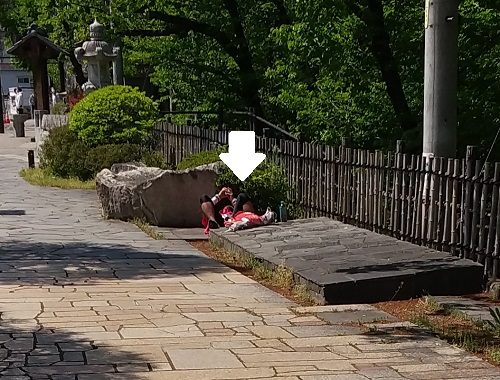 死んだよう(もしかしたら死んでるかもw)に寝ているので、そっとして城跡公園内に入ると、