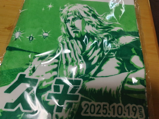 トキのタオルいいですね!でも、ケンシロウ、ラオウ、トキと続くと、次にパンチ力あるのがなかなか難しいですね。私はハート様に一票!