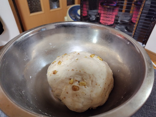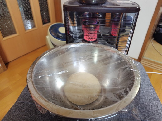 寒いので、ストーブをつけたので、その前で1次発酵です♡