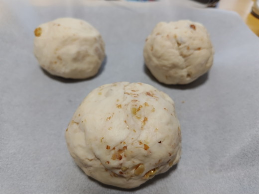 二次発酵が完了したので、丸めてオーブンに放り込みました!