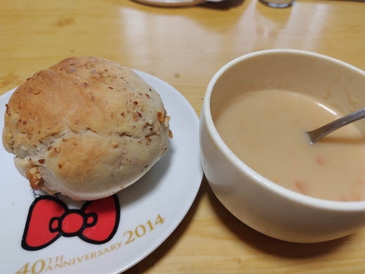 パンとスープで一食250円くらいの昼食だったとさw