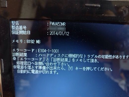 ハードディスクに機械的なトラブルがあるそうな・・・