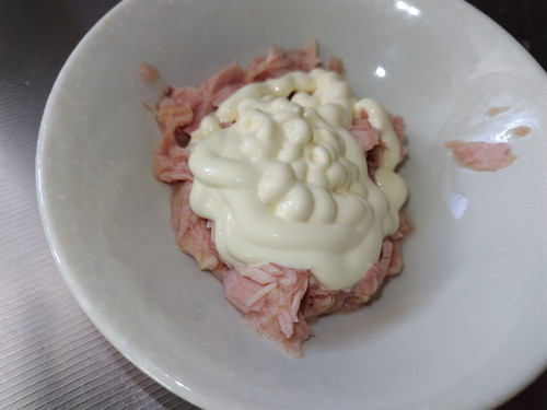 手作りパンに入れたツナはノンオイルで、マヨはカロリーハーフw