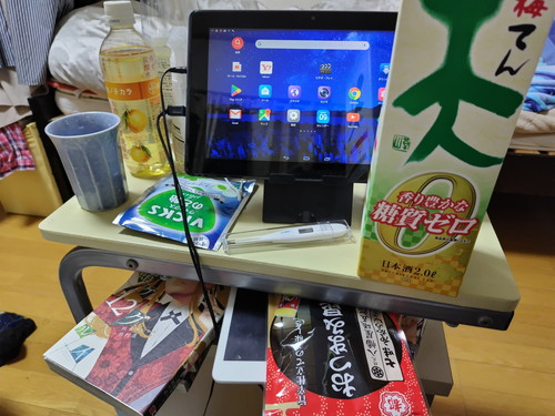 枕元には、薬と、コップ、それから、のどが痛いので、のど飴と、