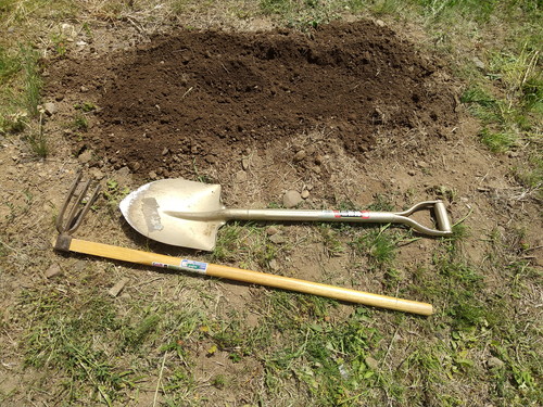 買ってきた腐葉土を混ぜながら、土壌改良し、肥料を混ぜ、
