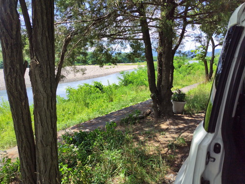 市内の気温は30度を超えていますが、木陰と川面を拭く風のおかげで、