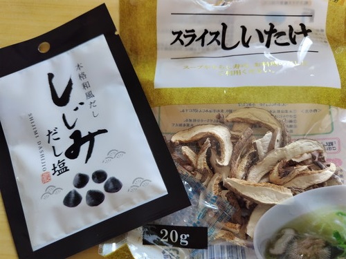 だし塩と乾燥シイタケのみww(←ともにDAISOで購入)