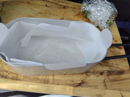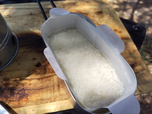 大きい方のメスティン(1.5合用)に、クッキングシートを敷き、