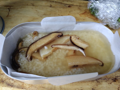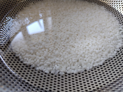 米を水につけ、塩とシイタケも一緒に入れて米にうま味を吸わせながら浸水しました(約2時間)