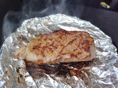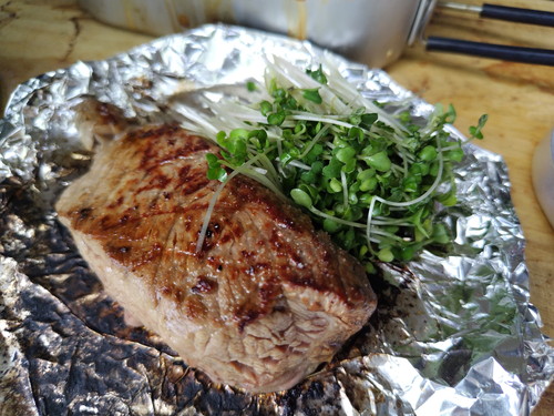 牛肉も焼きながら、醤油を少し差してご飯と一緒にかき込むと、