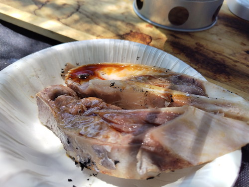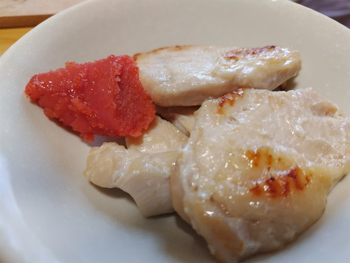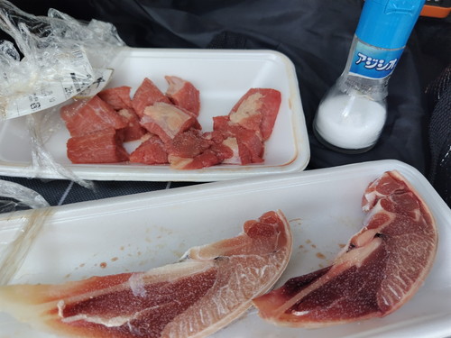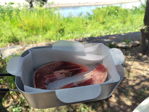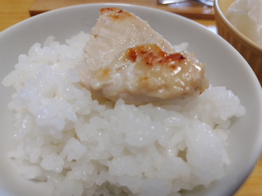 (マグロのカマの炭火焼き・・・みたいに見えますがw 正確には「マグロのカマにクッキングシートの炭を添えてw」です)