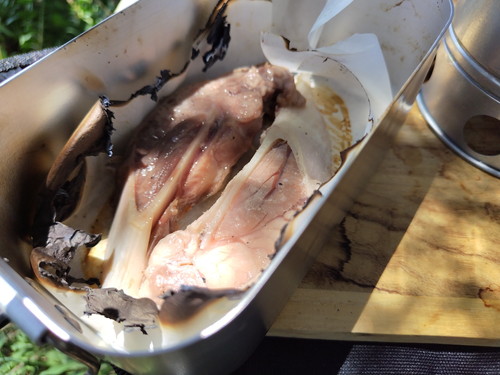 遊んでいると、10分経ったので、メスティンをタオルにくるんで蒸らします。
