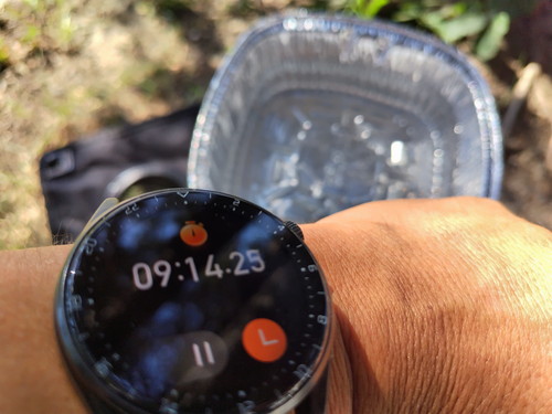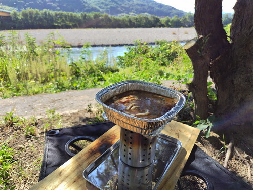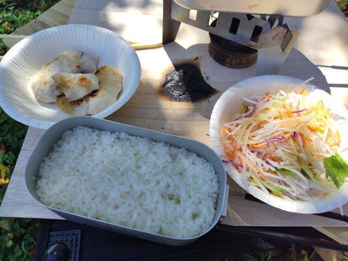 キャンプ飯の前に、走って汗を大量に書いたので、